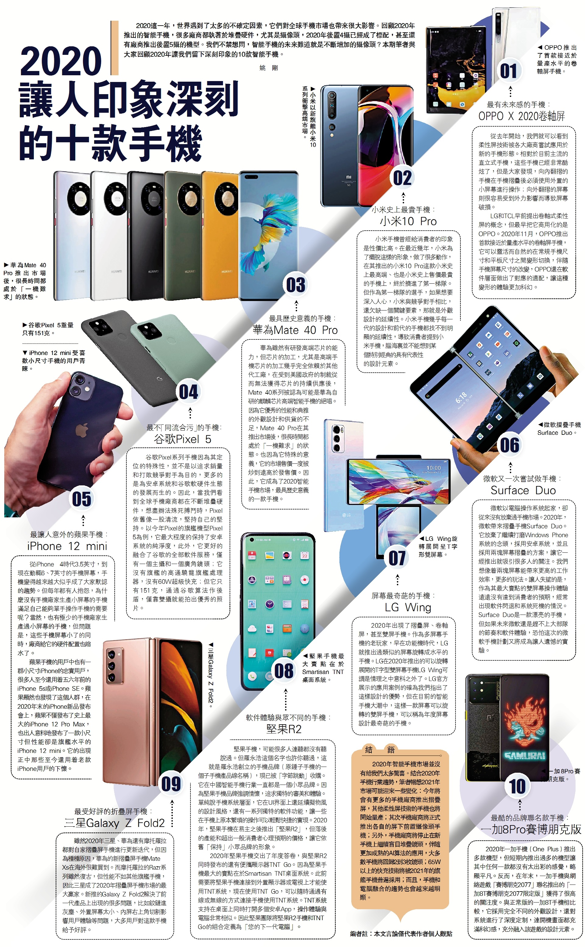2020這一年,世界遇到了太多的不確定因素,它們對全球手機市場也帶來很大影響。回顧2020年推出的智能手機,很多廠商都執著於堆疊硬件,尤其是攝像頭,2020年後置4攝已經成了標配,甚至還有廠商推出後置5攝的機型。我們不禁想問,智能手機的未來難道就是不斷增加的攝像頭?本期筆者與大家回顧2020年讓我們留下深刻印象的10款智能手機。