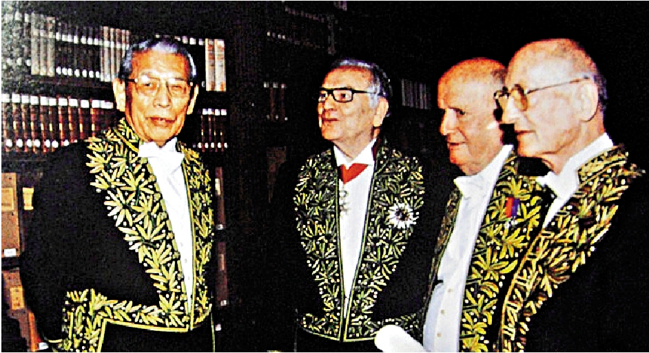 被稱為「思想的寶庫」的法蘭西學院中,有一個藝術學院,其當選院士是法國藝術界最高的學術頭銜。由於院士是終身制,所以只有當在任院士逝世後出現空缺,才能增補新的院士。法蘭西學院主席、著名雕塑家讓.卡爾多代表法蘭西藝術學院的院士們發表致辭:「您的創造中,不僅有着極其豐富的視覺印象和情感,在1987年,您向訪問您的牛津大學蘇利文教授說:『看畫就像聽音樂一樣』,主題和標題互相補充,使觀畫者感受到您內在世界的顫動,使人聯想到動人心弦的音樂,或者是凝固的音樂──建築。」「在我們眼中,您是一位創造力雄渾的藝術家,這個非凡的創造力支配着您非常廣闊的生命經驗。您卓越的智慧和人格,為我們學院帶來一片新的光輝。這片光輝的照耀,已超越了我們的國界。」