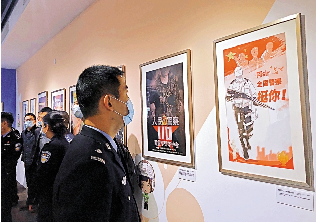 據了解,該展面向全國廣泛徵集海報、漫畫、動畫短視頻等作品,147幅優秀作品從1749件原創作品中脫穎而出,表達了社會各界與群眾對警察的致敬和認同,亦真實記錄警察打擊犯罪、扎根基層、服務群眾的感人故事,描繪警民同心、攜手共建、共創平安的生動畫面。