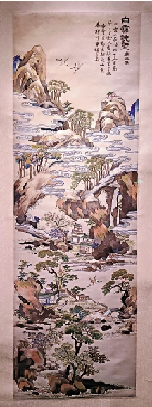 起着相同作用的,還有展覽中展出的一批以白雲山、珠江水等為主題的絲織品。伴隨海上絲綢之路航線的不斷擴展,海外市場需求的日益增加,廣繡在原有風格的基礎上吸收了西洋油畫的藝術特色和明暗透視及光線折射的原理,白芳指出「中西繪畫藝術的結合及再創作是明清時期其他地方繡種所鮮見的。」