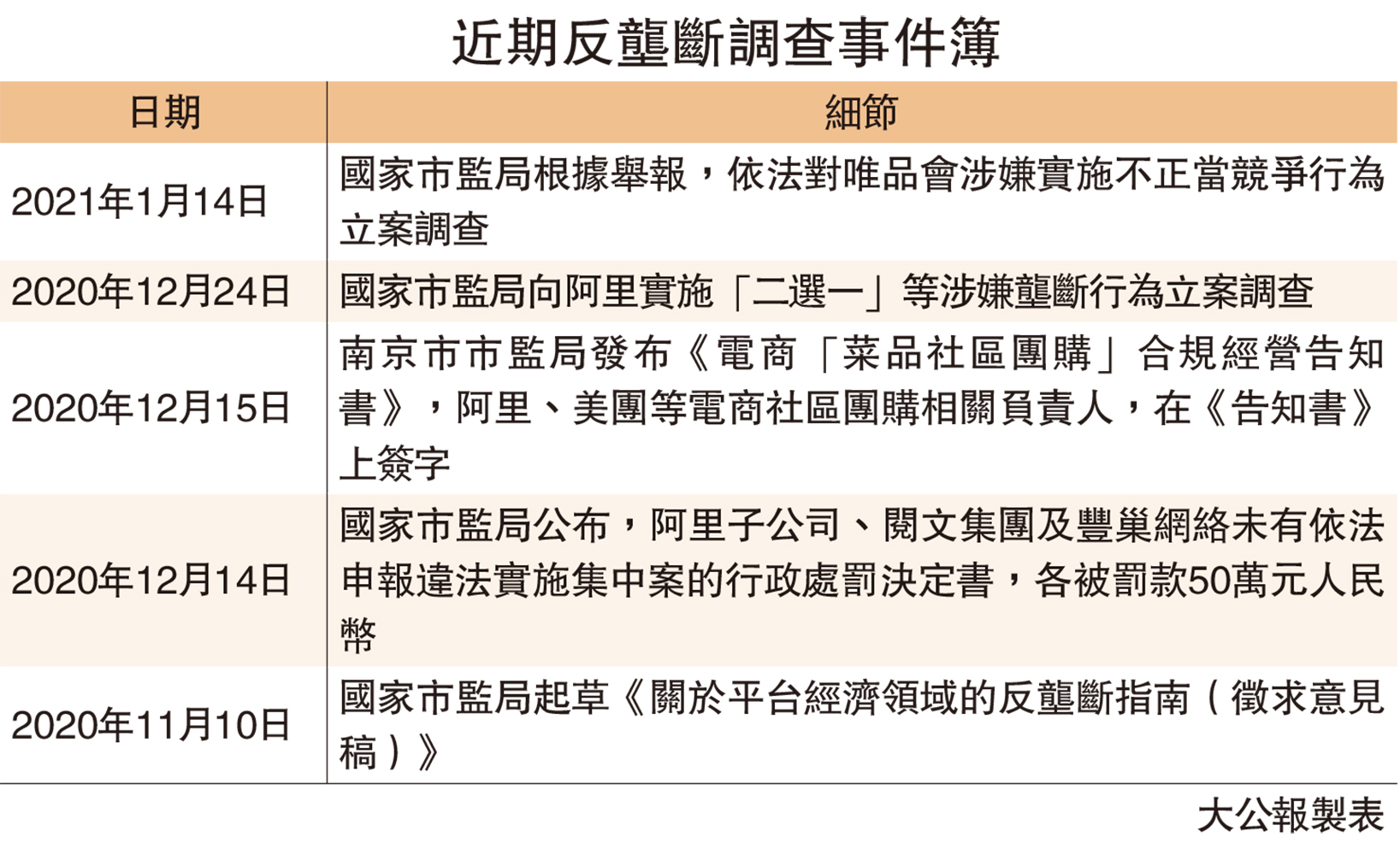 國家市場監管總局去年在「雙11」前夕,起草《關於平台經濟領域的反壟斷指南(徵求意見稿)》,隨後對阿里子公司、騰訊旗下閱文(00772),以及順豐(002352.SZ)為大股東的豐巢網絡,以未依法進行經營者集中申報,各罰款50萬元(人民幣,下同)。