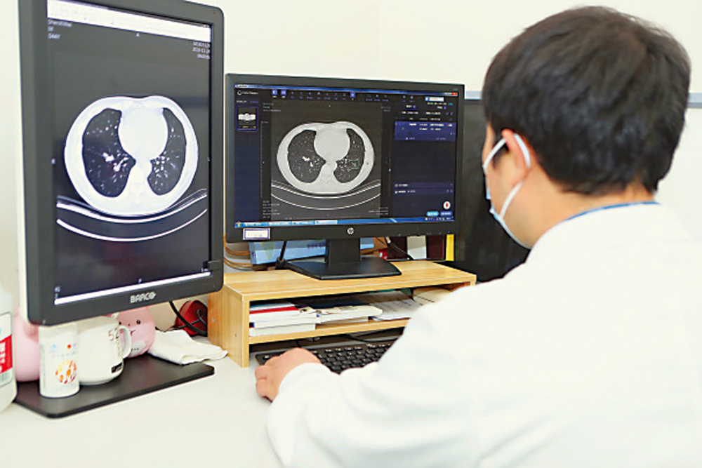 然而自放射科投用了「AI輔助影像診斷系統」,讀片效率成倍提升。系統可以快速找出肺部所有結節並定位,還能判斷大小、危險程度,也可與之前檢查作對比,將所有可疑部位標出並給出初步評分,再交由人類醫生來「終審」。有了高效率、高質量的「初審」,人類醫生的「終審」更加有的放矢。這一年來,放射科每月閱片6000餘例,診斷資源緊張得到緩解,也最大程度上減少漏診可能。