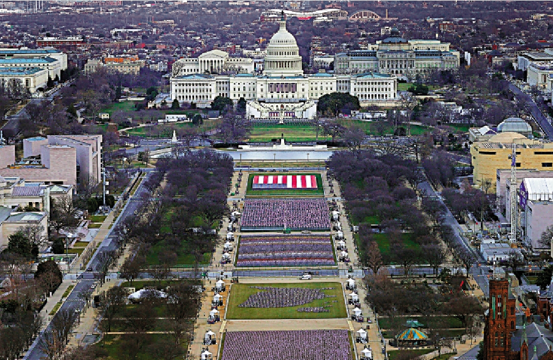 【大公報訊】綜合BBC、《華盛頓郵報》、CNN報道:美國候任總統拜登的就職典禮20日將在首都華盛頓舉行,但國會騷亂陰雲未散,加上新冠疫情肆虐,以往百萬人潮湧入華府慶祝新總統就任的盛況不會出現,取而代之的是20萬隻旗幟。華盛頓目前有2.5萬國民警衛隊重兵把守,大部分活動改為網上進行,務求兼顧防疫、防暗殺、防暴動。