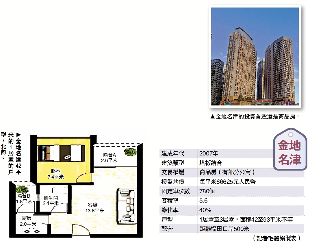 金地名津由深圳知名房地產公司金地集團開發,建於深圳河旁邊,推窗即可見河套田園風光,視野較好,出行也極為方便。