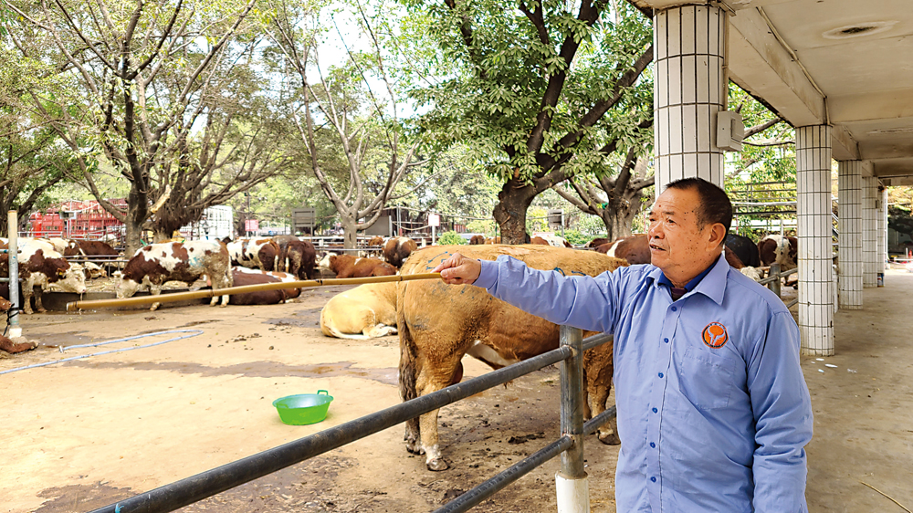 上午8時,東莞橫瀝鎮駿馬路,綠樹成蔭的「牛花園」裏熙熙攘攘,人們三五成群圍在一起,有人手拿木棒敲打牛身,眼睛像掃描儀一樣分析着牛隻的健康狀況,並與買家當場討價還價,議價成功則迅速在牛身上噴上買家姓名。這些牛中,即牛經紀,憑着一雙手、一雙眼和一根木棒精準判斷牛隻重量、健康狀況,其誤差不超過一斤半,每月有近千頭牛通過他們的火眼金睛檢驗後銷往香港,成為市民餐盤上的佳餚。