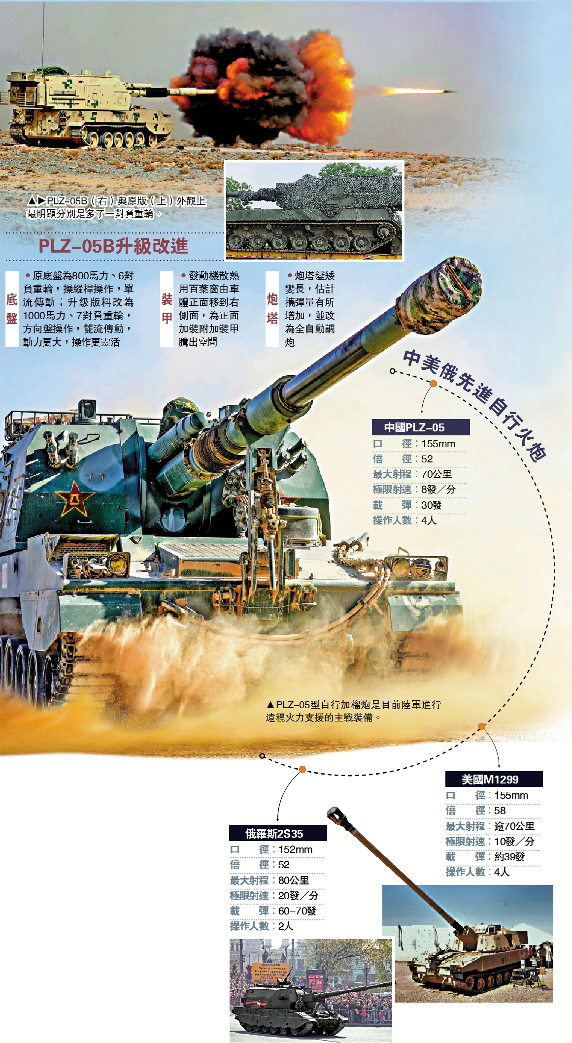 彈藥艙儲彈量的增加、射速的提高、防護力的加強,全面提高PLZ-05B榴彈炮的攻擊與防護性能,成為陸軍新的當家主力火炮。