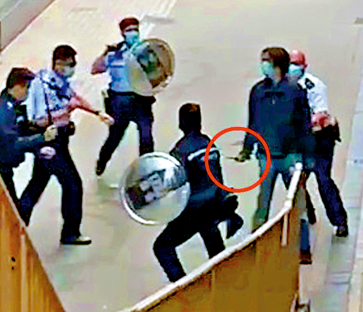【大公報訊】記者黃浩輝報道:跑馬地街頭前日出現持械男子闖入銀行指嚇職員,多名警員接報到場用警棍將其制服,有途人拍下事發影片後在網上瘋傳。有網民訛稱警方使用過分武力,警方隨即發出嚴正澄清,指該男子為較早前持武器闖入銀行指嚇職員的疑犯,警員使用最低所需武力將其制服。
