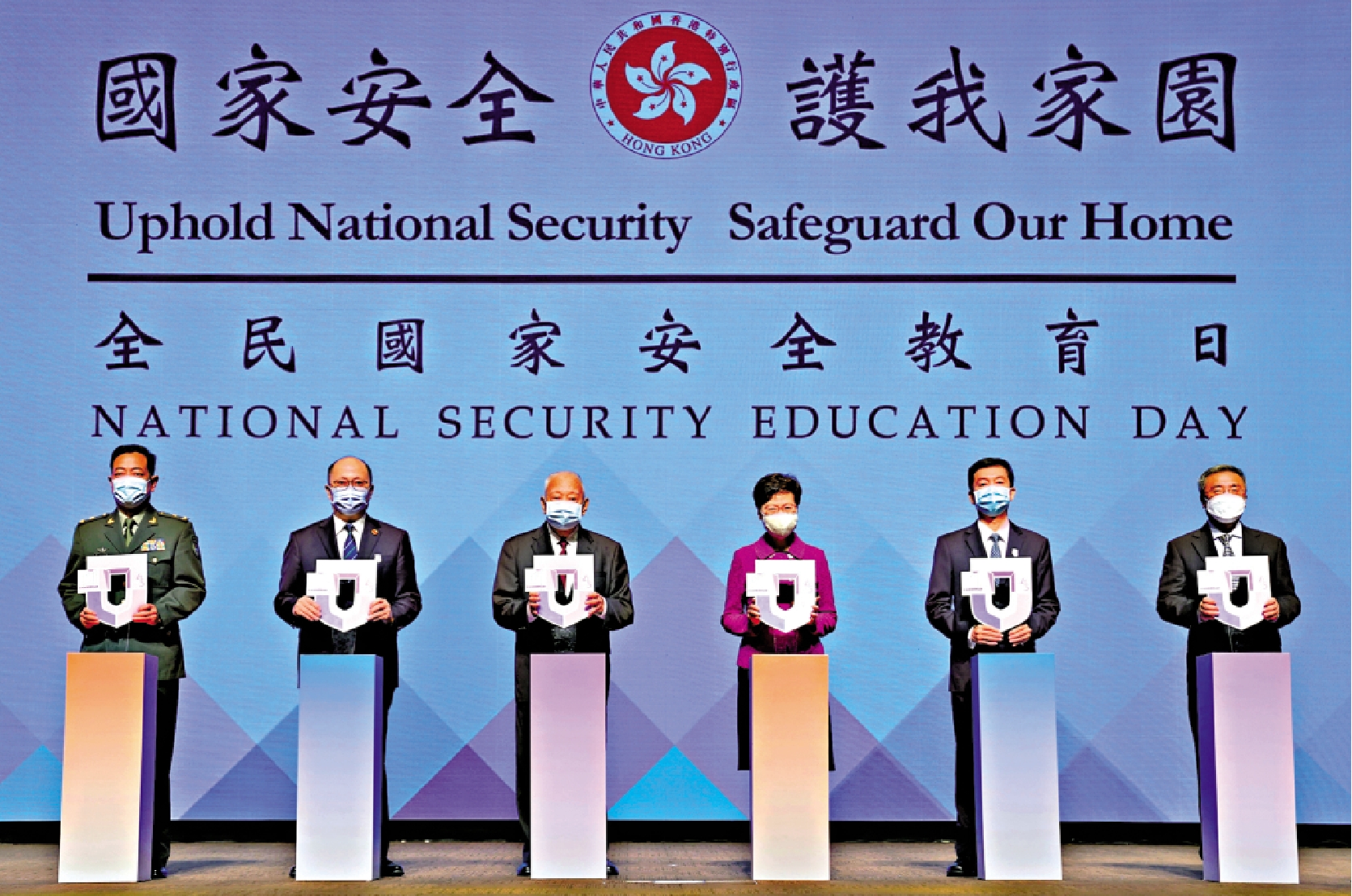 「全民國家安全教育日2021」活動開幕典禮暨主題講座昨日在香港會展中心舉行。這是香港國安法頒布實施後第一個香港「全民國家安全教育日」,也是第一次由香港特區維護國家安全委員會主辦。全國政協副主席董建華,行政長官林鄭月娥,中聯辦主任、香港特區維護國家安全委員會國家安全事務顧問駱惠寧,駐港國安公署署長鄭雁雄,外交部駐港公署署理特派員楊義瑞,駐港部隊司令員陳道祥共同啟動典禮。特區政府主要官員、港區全國人大代表、全國政協委員、特區行政會議成員、立法會議員等約600人出席典禮。