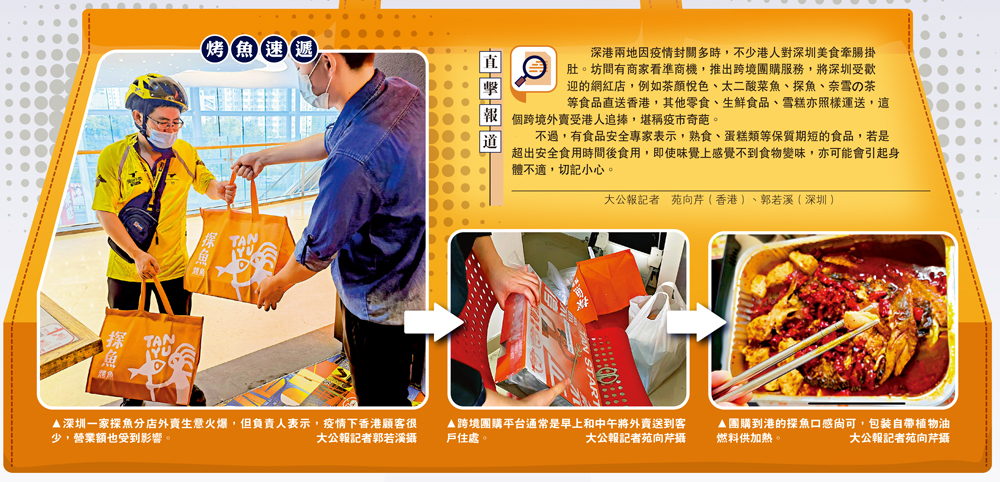 深港兩地因疫情封關多時,不少港人對深圳美食牽腸掛肚。坊間有商家看準商機,推出跨境團購服務,將深圳受歡迎的網紅店,例如茶顏悅色、太二酸菜魚、探魚、奈雪の茶等食品直送香港,其他零食、生鮮食品、雪糕亦照樣運送,這個跨境外賣受港人追捧,堪稱疫市奇葩。