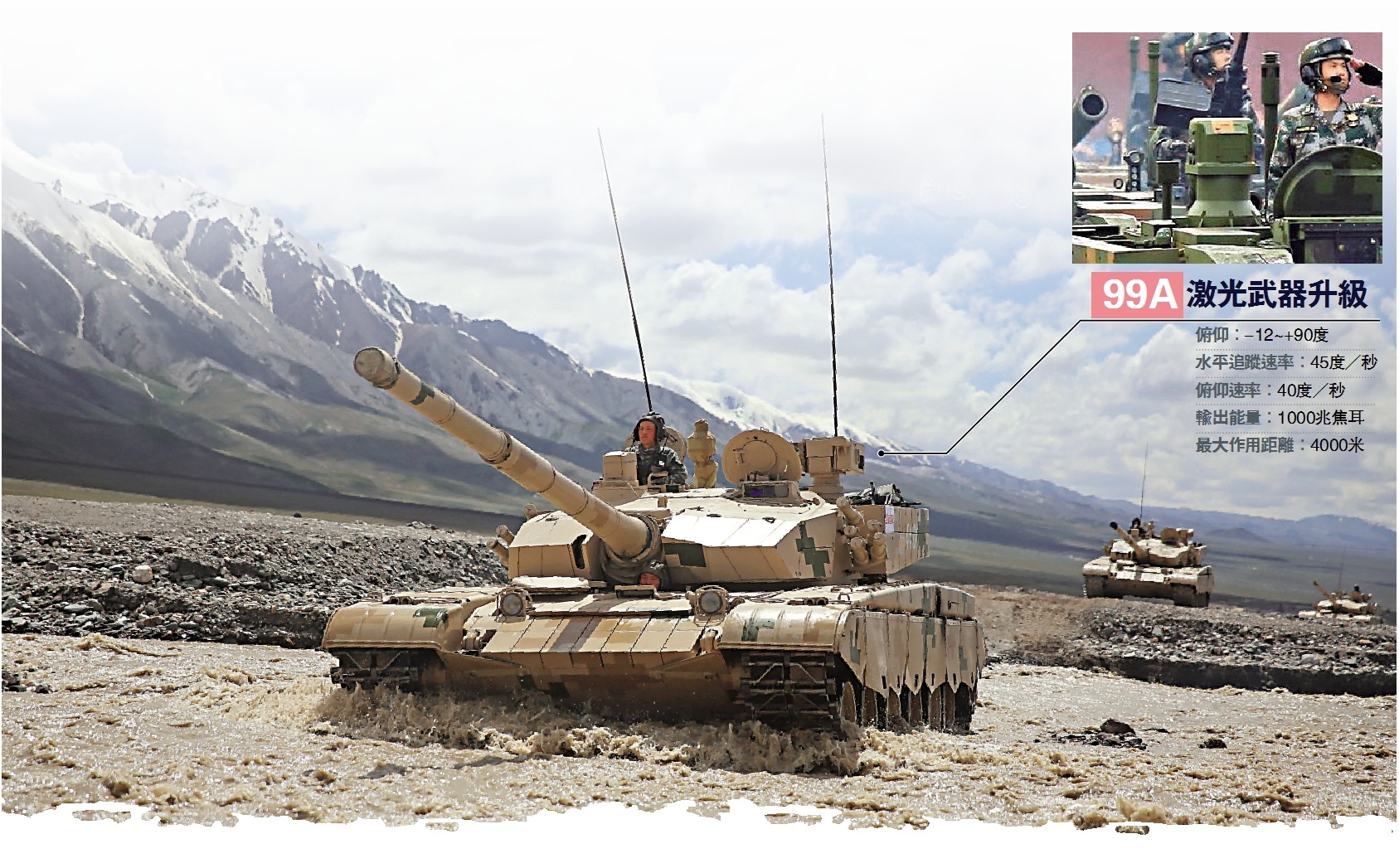 央視最近首次曝光了中國「陸戰之王」99A主戰坦克在行進中炮射導彈的片段。這一新技能能夠用以打擊各類地面工事、低空慢速飛行器、近岸水面艦艇等,配合可以甄別目標、自動跟蹤的智能系統,以及壓制敵方坦克觀瞄系統的激光武器,提高了其機動精確打擊能力,堪稱陸海空通殺。\馬浩亮(文)