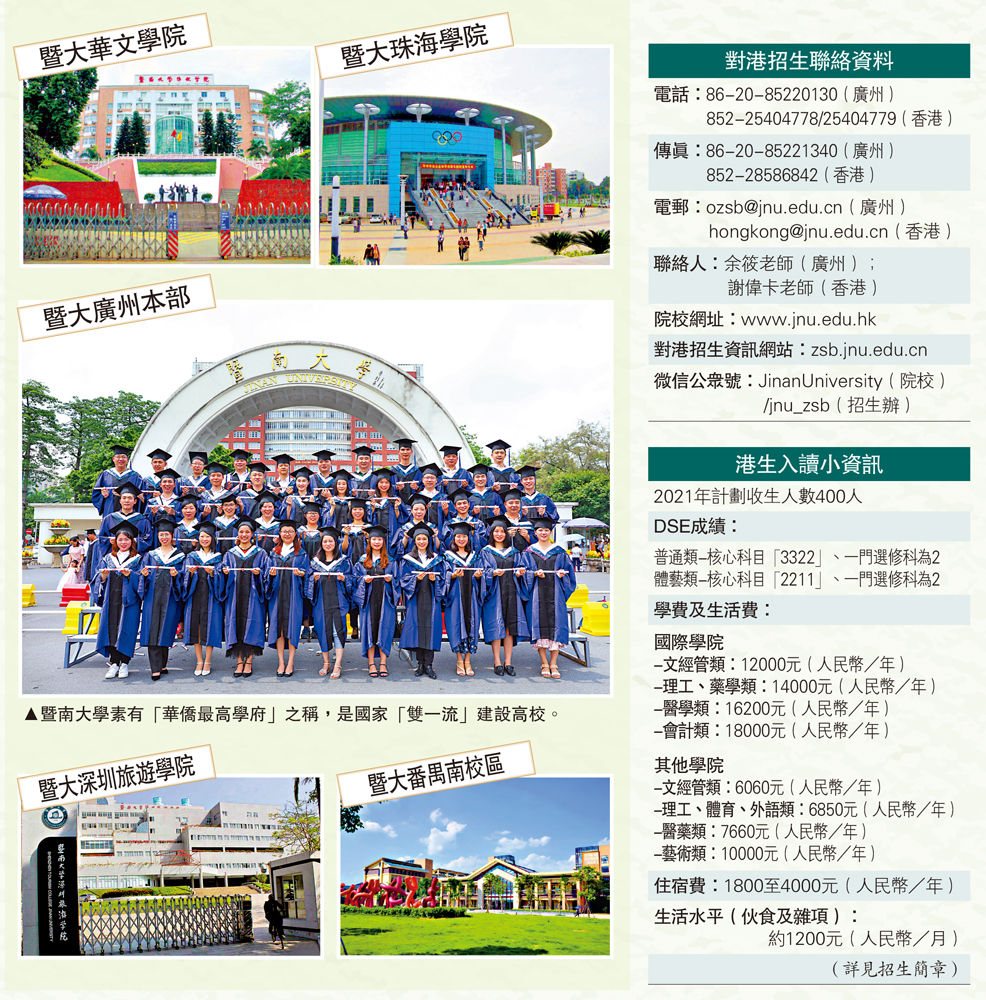 現在越來越多香港學生會選擇到內地升讀大學,而暨南大學更是不少學生的心水首選。暨大畢業生在港澳地區認受性高,這也讓不少港澳學生心動。暨南大學創辦於1906年,素有「華僑最高學府」之稱,是國家「雙一流」建設高校,也是廣東省高水準大學重點建設高校。
