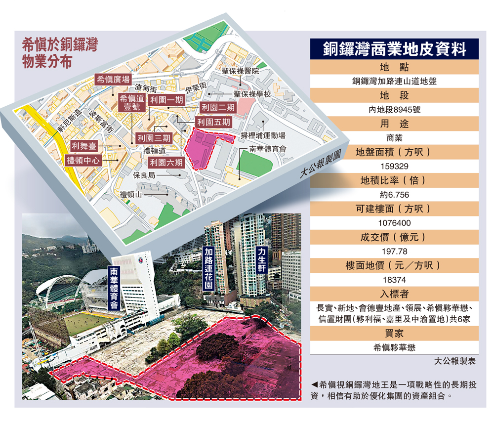 儘管目前商業市道慘淡,希慎興業(00014)卻看好未來商業市道前景,並首度夥華懋集團重槌出擊,以近198億元奪得銅鑼灣商業地王,較市場上限估值高約15%,令其在銅鑼灣的商業樓面增至約450萬方呎。希慎興業主席利蘊蓮強調,香港是國際大都會,受惠於大灣區的發展和內地強勁的經濟動力,將繼續蓬勃發展,對香港的未來非常樂觀。