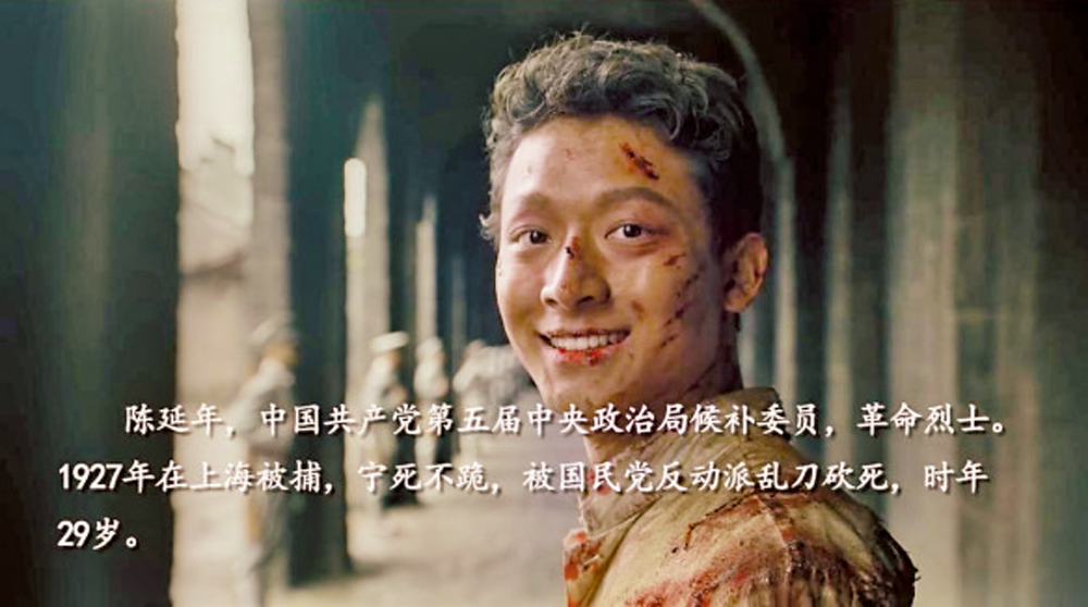 劇中每個人物退場時,屏幕都會給出簡要的字幕,概述其一生貢獻。在陳獨秀之子陳延年英勇就義後,屏幕打出的字樣包括:「寧死不跪,被亂刀砍死」。「我第一次看到這兩句話時,眼淚一下子湧了出來。」導演張永新回憶說,當年,陳延年也不過是一個二十多歲的年輕人,他也是血肉之身,究竟是什麼力量支撐着他,在面對敵人屠刀時,可以昂首而立?「我想,他的心中一定有一團火。」