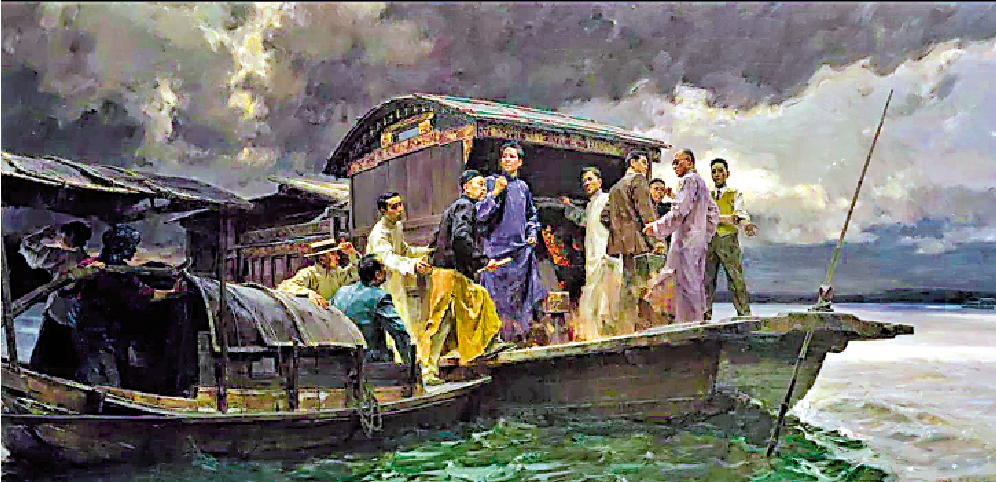 版畫《播火記》、油畫《五四運動》《明燈—1939年中國共產黨浙江省第一次代表大會》……氣勢恢宏的畫作,串聯起一段段值得銘記和懷念的歷史。油畫《湖山掩映—浙江近代國學大師》、中國畫《星空璀璨—浙江近代文學巨擘》、水彩畫《「兩彈一星功勳獎章」獲得者中的浙江人》、中國畫《浙商群體》中的人物,以及「幹在實處」的《義烏經驗》、「敢為人先」的《溫州模式》等代表的浙江精神,以藝術化的呈現方式,留下了彌足珍貴的人民群像。