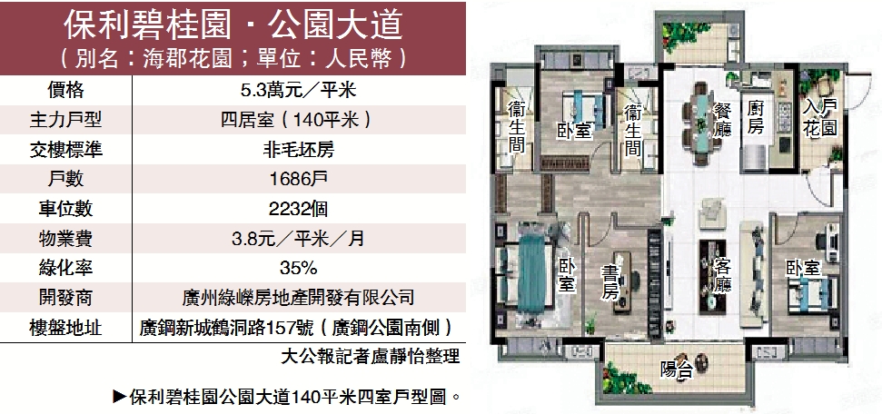 大公報記者從樓盤銷售了解到,保利碧桂園·公園大道近期也推出了一批一口價單位。銷售工作人員表示,由於周圍不少配套已眼見可以投入使用,即便有單位做優惠活動,單價上仍然比去年同期略升。