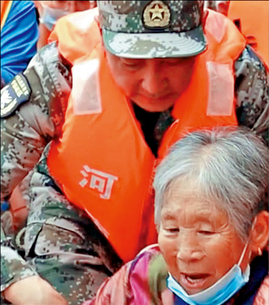 水災無情人有情,河南災情牽動着海內外無數人的心,在網上一段視頻中,有一位年長戰士正在攙扶一位老奶奶轉移安置,後有網友發現他神似曾參與國慶70周年閱兵的共和國上將朱生嶺。後經媒體與有關部門核實,這位戰士正是中部戰區上將政委朱生嶺。網友截屏的視頻是7月22日鄭州阜外華中醫院轉移安置群眾的救援現場。朱生嶺在現場參與救援,由於軍銜正好被救生衣擋住,現場甚至都沒人知道他其實是共和國上將。據媒體報道,河南災情發生後,此次河南災情中,從將軍到戰士,人民子弟兵真的是用行動在踐行:江山就是人民,人民就是江山!