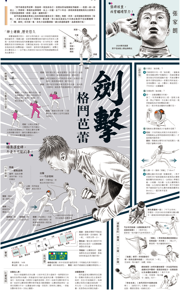 「對手都是世界冠軍,落後時,我告訴自己,沒理由因為發脾氣而輸掉……我會一劍一劍追上。」張家朗,香港的金牌傳奇。台上一分鐘,台下十年功,家朗與香港運動員向大家展示什麼是奧運精神:跌倒、起身、繼續向前!