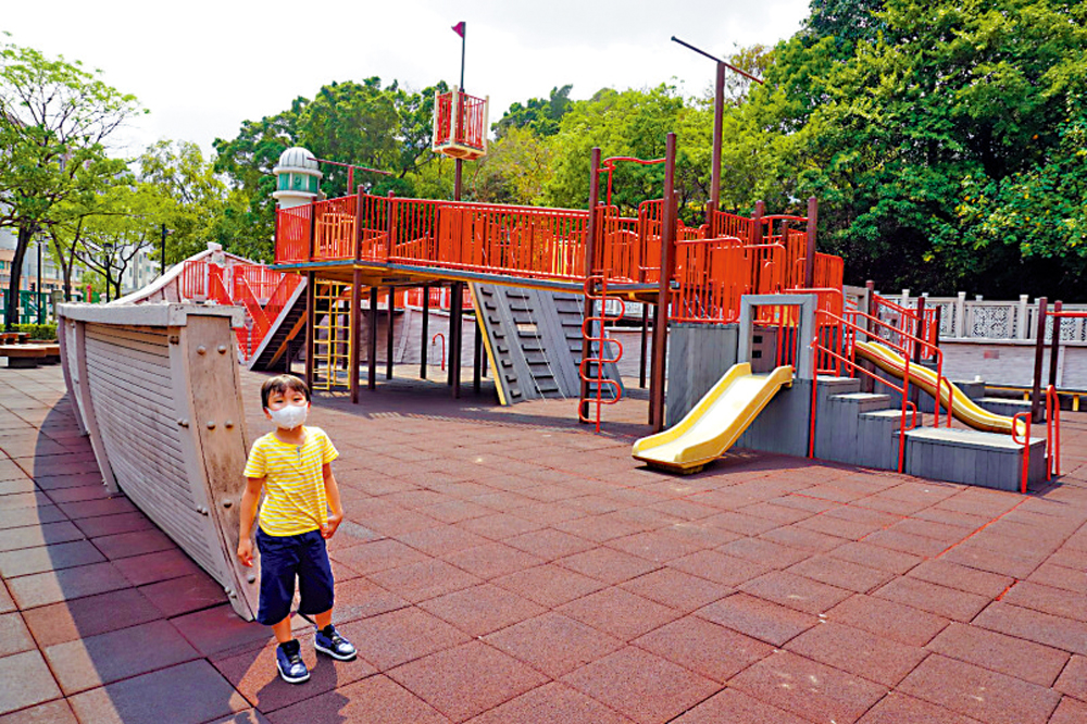 一進園內,中式帆船造型的設施十分吸睛,正中擺放了一艘高逾2米的巨型木帆船,船中有大量攀爬架,上面有不同玩樂設備。