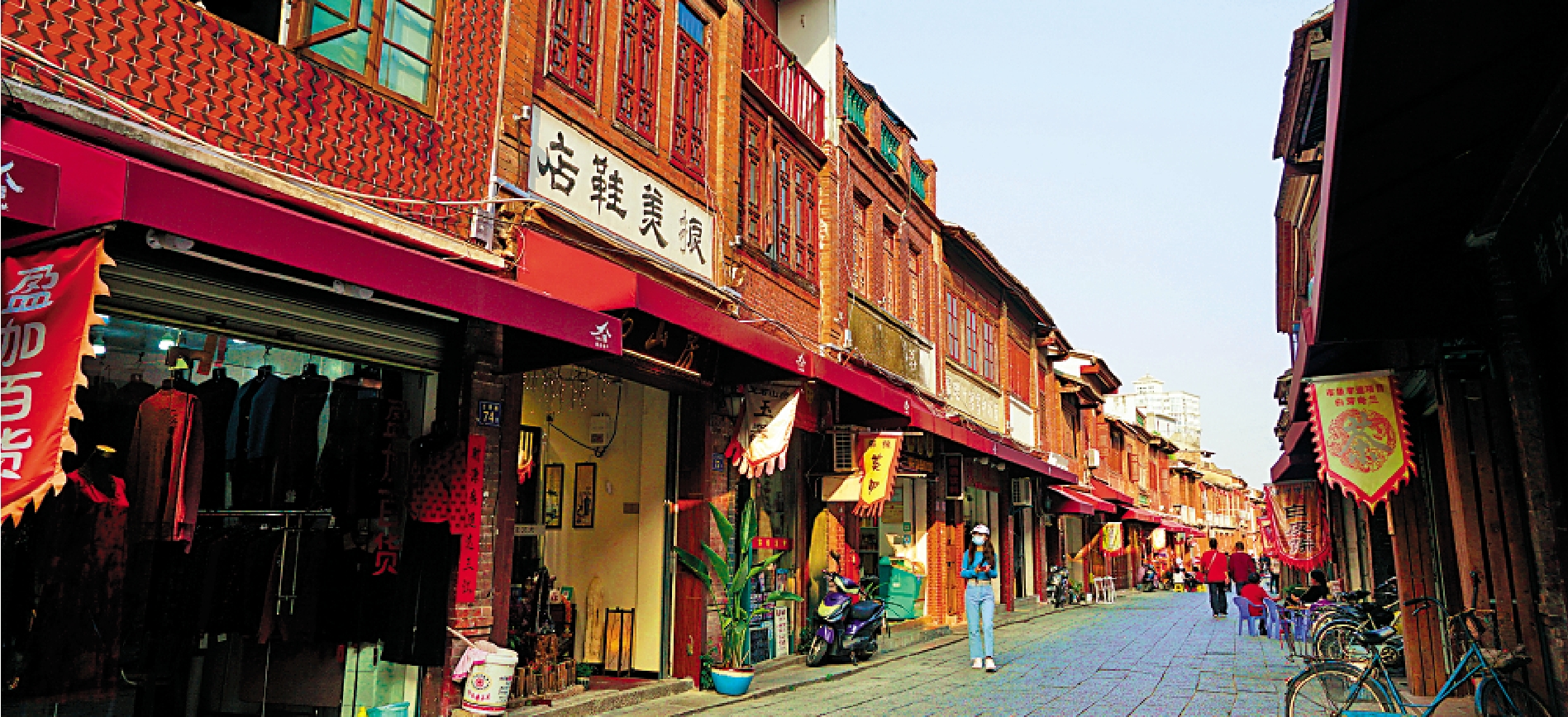 記者在探尋漳州宮保第遺址時意外去到正在修整的漳州古城。一條東西走向的台灣路,居中橫切了漳州古城核心區域。電影《雲水謠》由兩岸三地影視公司和演員合拍。影片內的台灣市景,便在台灣路拍攝。徜徉在台灣路的青石板路上,一個個獨具歷史氣息的沿街老字號店舖招牌映入眼簾:天益壽藥店、萬圓錢莊、至人藥房、商務印書館代理處……在漳州的台商說,漳州台灣路和台南的不少舊街道很像。