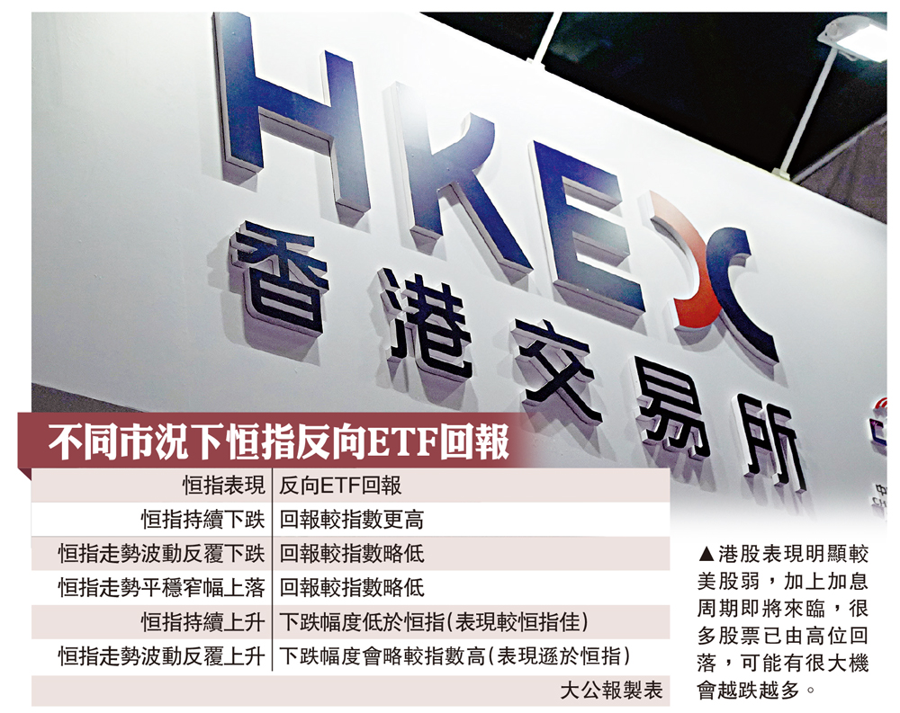 恒指反向ETF產品選擇少