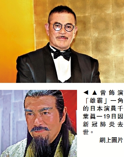 【大公報訊】綜合日本放送協會、共同社報道:日本知名演員千葉真一因感染新冠肺炎,19日在千葉縣一間醫院去世,終年82歲。他在《風雲:雄霸天下》中飾演「雄霸」一角,獲得第18屆香港電影金像獎最佳男主角提名。