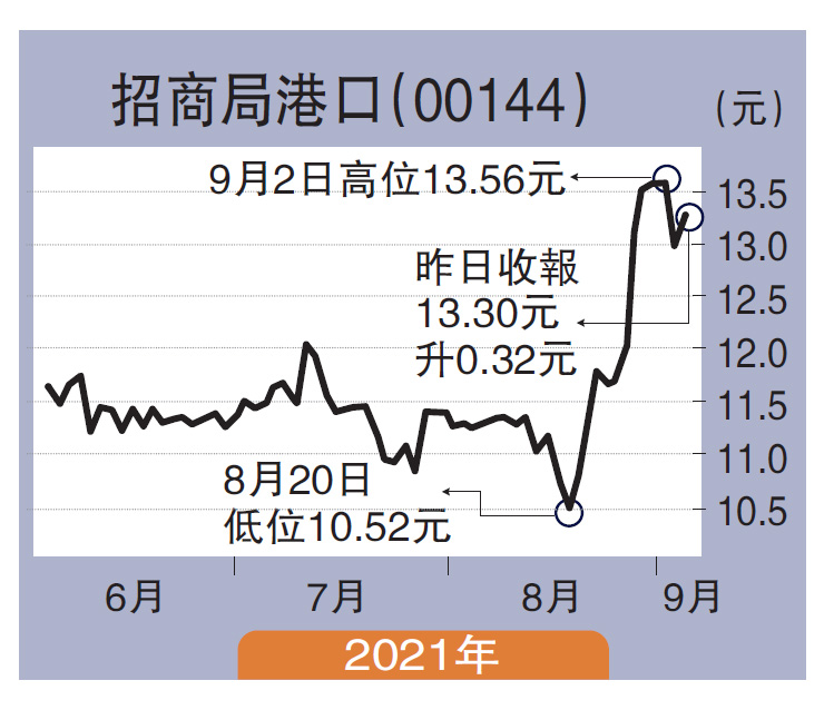 期內,完成集裝箱吞吐量6651萬TEU(20英尺當量單位),按年增加21.2%;完成散雜貨吞吐量2.84億噸,按年增加42.8%。經常性溢利45.3億元,按年大幅增加221.5%,其中來自港口業務為44.48億元,按年升100.9%。