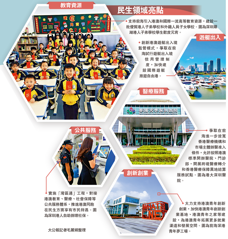 覃偉中表示,將聚焦社會民生,出台更多便利港澳居民在前海工作生活新舉措,打造宜居宜業宜遊的優質「生活圈」。「我們將深入實施『灣區通』工程,對接港澳教育、醫療、社會保障等公共服務體系,推進港澳同胞在民生方面享有市民待遇,特別是大力支持港澳青年創新創業,加快港澳青年創新創業基地、港澳青年之家等建設,為港澳青年拓展更多就業渠道和發展空間,不斷增強港澳青年對祖國的向心力。」覃偉中說。