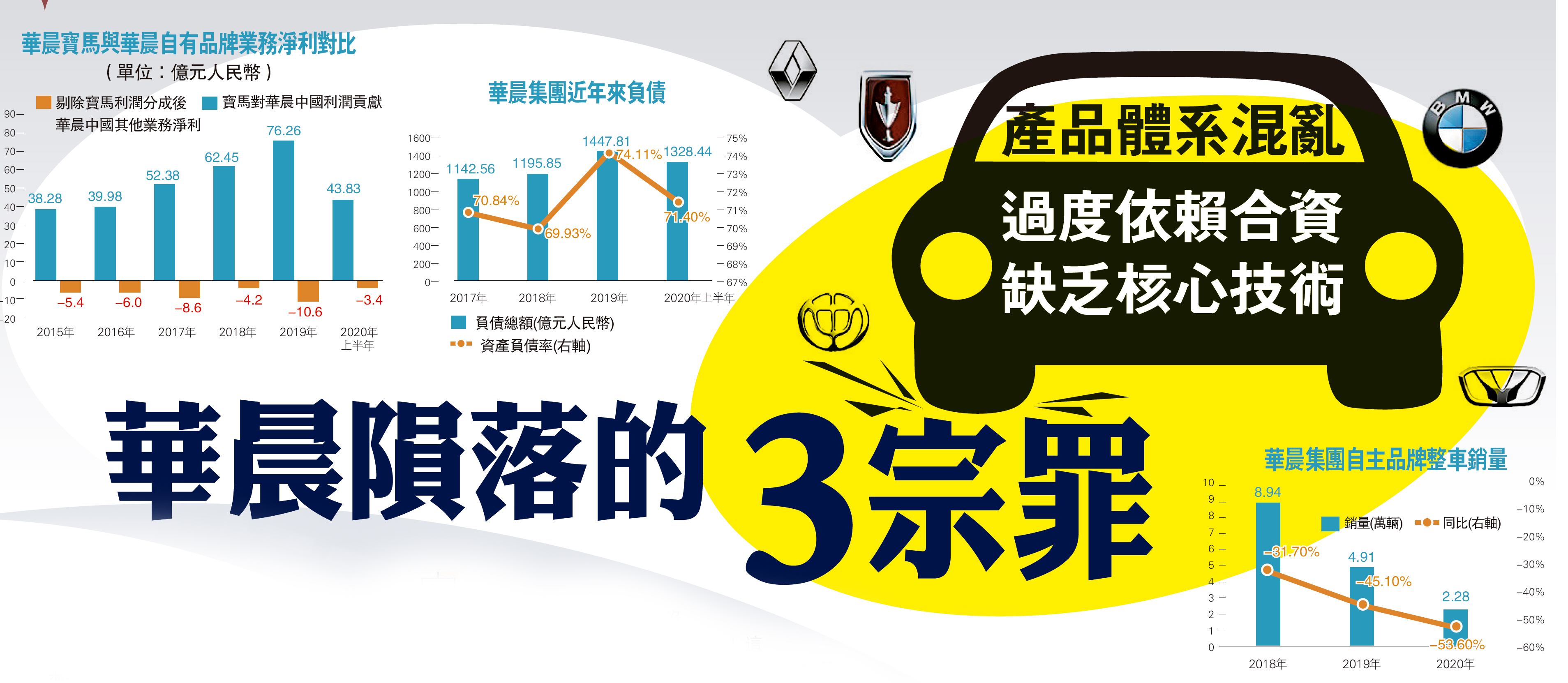 然而在祁玉民看來,對於底子太薄的華晨來說,有「拿來主義」就夠了,這也讓華晨自主品牌板塊失去了翻身機會。財報顯示,2019年華晨營收40.27億元,稅前利潤高達62.92億元。但事實卻是,若剔除寶馬的利潤貢獻,華晨淨利潤要倒虧10.64億元。