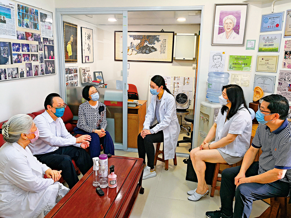 從醫40多年的張玉麟醫師聽說有客人來訪,特意整理出幾頁紙的問題。他十分關注中醫藥參與防疫的問題,認為中醫藥參與新冠肺炎疫情防控在內地和一些國家都發揮了很好的作用,香港應借鑒內地經驗。他說,「我們非常希望把『根』留住,留住中華民族的『根』」,希望中央和特區政府在培訓方面可以提供更多支持,讓青年人有更多的機會發展。特別是可以讓青年中醫師更多參與社區層面的醫療工作,既可以積累經驗,也可以發揮中醫藥在防疫中的預防保健作用,推廣中醫藥服務和文化。