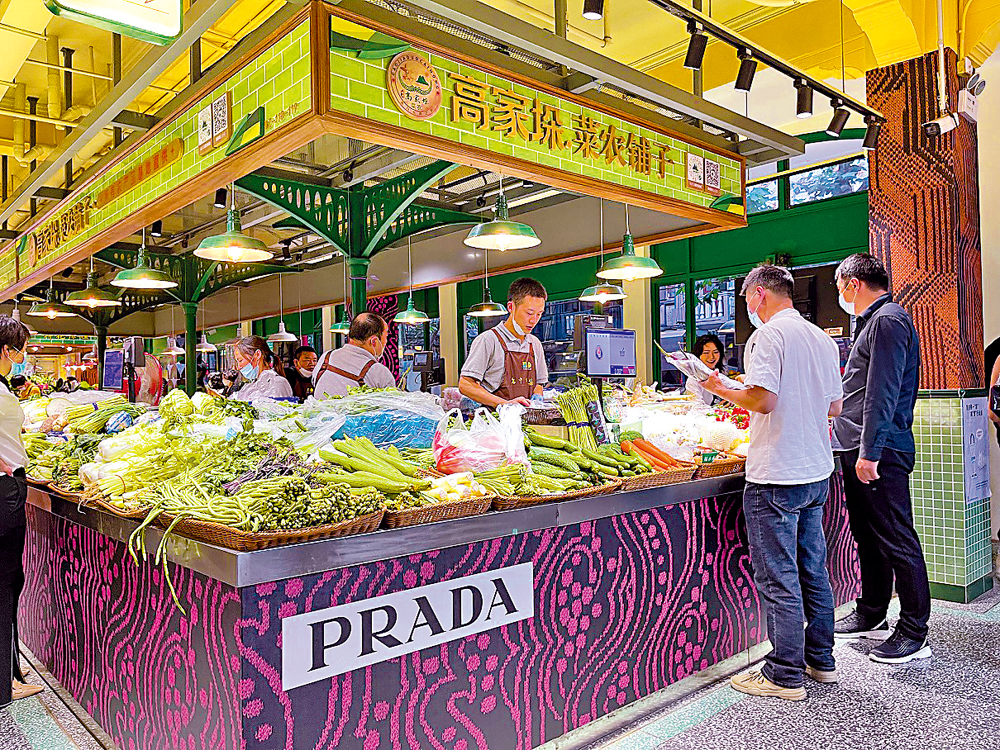 位於上海市中心的前法租界核心地帶的烏中市集最近成了時尚界的寵兒,適逢2021秋冬廣告大片發布,Prada包下整個烏中市集,利用新發布系列面料中的印花,將整個烏中市集從建築外牆到果蔬包裝,裝點一新。
