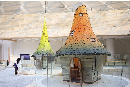 日本當代藝術家奈良美智裝置藝術作品《然而並非一切(綠屋)》《然而並非一切(橘屋)》亮相江蘇南京的德基美術館。「兩屋」是自成一體的「奈良美智美術館」:融會了繪畫、雕塑、裝置等多種藝術形式,將觀眾帶入藝術家創造的夢境與現實。