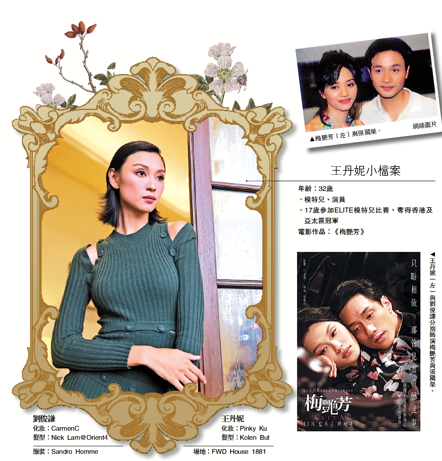 梅艷芳是香港樂壇的一個傳奇,除了演藝方面的成就,她在世時熱心慈善公益,其經歷最近被拍成電影《梅艷芳》,女主角經過千挑萬選,最終由從未有演戲經驗的模特兒王丹妮擔演。她說:「我不是要模仿梅姐,她是獨一無二的,只希望大家透過電影緬懷她的一生。」王丹妮不諱言,演梅艷芳是一次奇妙旅程。\大公報記者 文霏霏(文) 文 澔(圖)