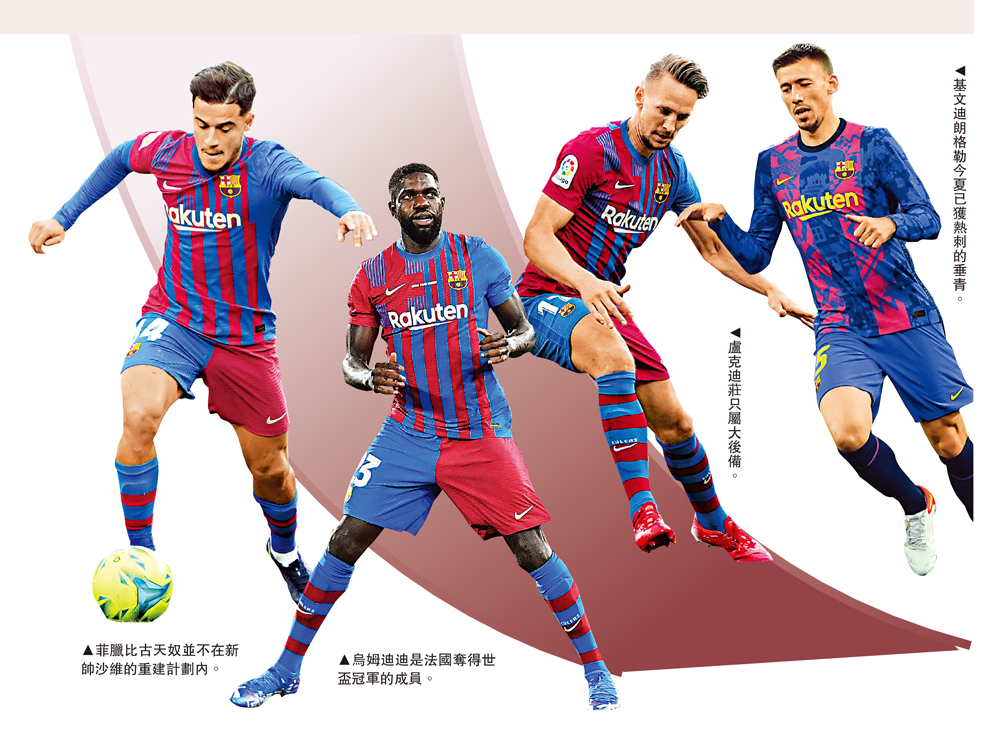 巴塞隆拿已經完成2021年所有比賽,暫時在西甲18戰只獲28分,未計今天凌晨賽事已落後聯賽榜榜首宿敵皇家馬德里15分,爭標可說不切實際,力爭保住前四席位保住下屆歐聯參賽資格才最現實。巴塞將於下月的冬季轉會窗重新調整軍容,但會方已明確表示,首要行動便是清走若干球員「減重磅」,外間亦鎖定了6名「高危人士」,包括曾奪歐聯冠軍的菲臘比古天奴、世界盃冠軍成員的烏姆迪迪等,希望下半季輕裝起飛。\大公報記者 譚德龍