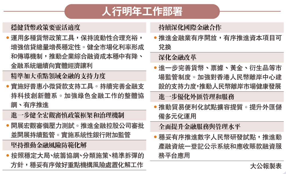 【大公報訊】中國人行昨日召開2022年工作會議,提到要運用多種貨幣政策工具,保持流動性合理充裕,增強信貸總量增長穩定性。按照穩定大局、統籌協調、分類施策、精準拆彈的方針,穩妥有序做好重點機構風險處置化解工作。穩妥實施好房地產金融審慎管理制度,促進房地產業良性循環和健康發展。