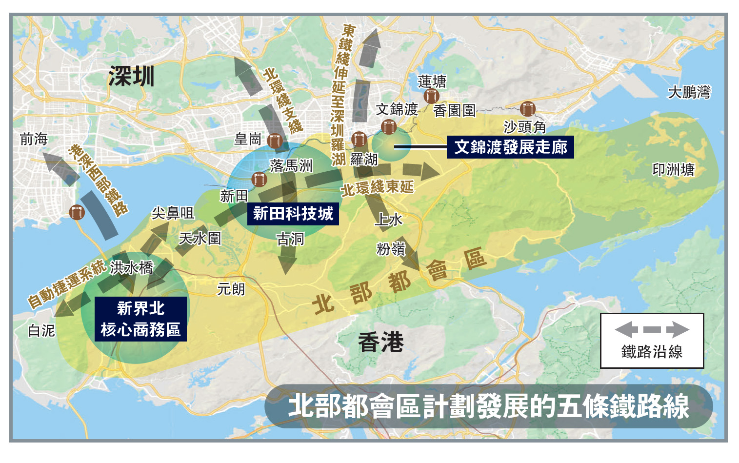 林鄭月娥交代北都多項工作進展。交通基建方面,特區政府正與深圳市政府討論三條跨境鐵路項目,她稍後到訪深圳與市領導交換意見;運房局正着手研究連接洪水橋和前海鐵路在港方路段沿線增設車站的位置;政府亦已要求港鐵今年內提交北環綫北延支綫的技術和財務建議。