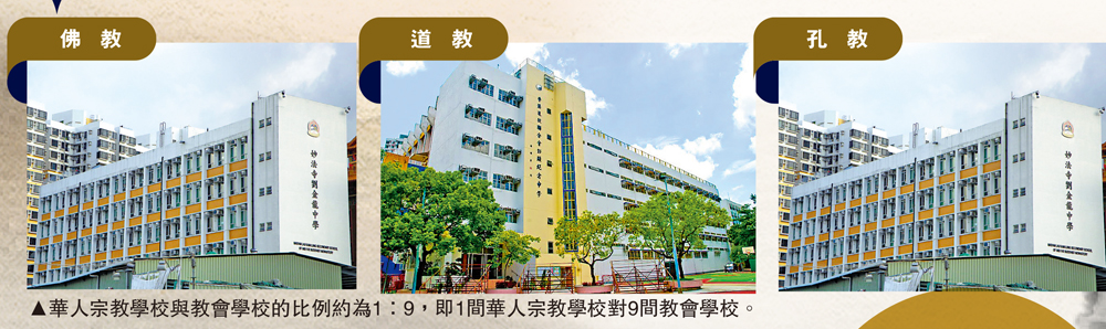 據去年資料顯示,本港教會有311所小學、265所中學,教會學校與華人宗教學校的比例約為9:1,即9間教會學校對1間華人宗教學校。回歸前,華人宗教團體辦校更是寥寥可數。
