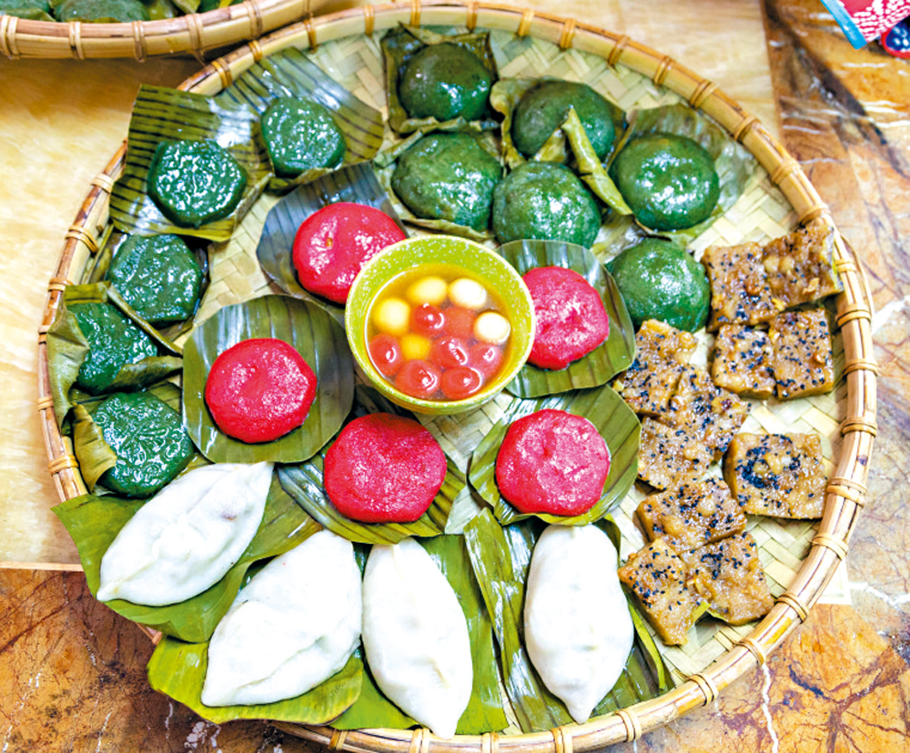 巧環告訴我,葵涌客家喜事常做的三樣是:喜粄(起粄),嘗頭圓,青圓仔,此之外,逢年過節,各有不同,譬如清明做艾茶果,端午包糉子,十月初一吃糍粑,冬至品菜頭角,過年的主打自然是年糕了。具體到每一味,還有餡料的單純與混合,糉子就有鹼水糉、鹹肉糉、海膽糉之分;菜頭角則混搭了蘿蔔芹菜蒜苗與豬肉蝦乾海貝。海邊人的茶果,距離海鮮咫尺之遙,故而,米麵敷設其外,魚蝦卧伏其間,那是山與海的契合,那是手藝與情感的盤桓,那是舌尖與記憶的連綴。