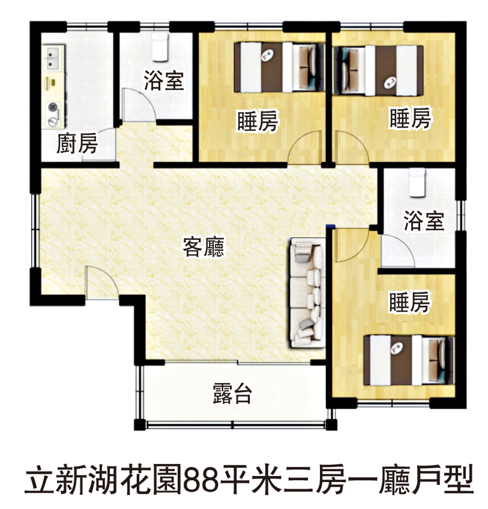 福永立新湖花園為12棟8層高的小高層住宅,主要戶型是87至96平米的三房,也有部分頂層複式樓。園林綠化面積大,配有超市。