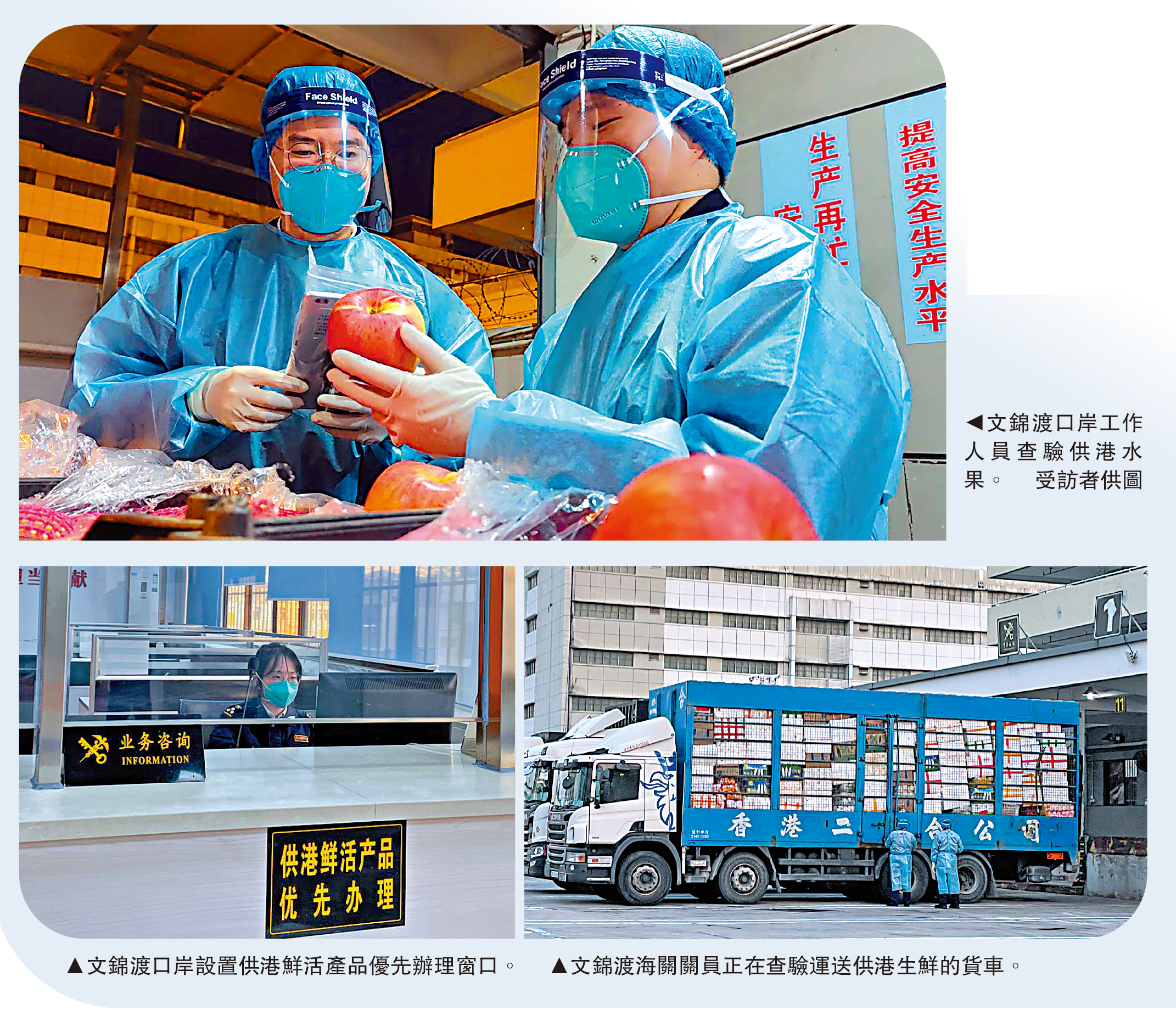 香港市民「菜籃子」九成新鮮蔬菜來自內地,由全國600多個備案種植基地和100多家企業生產,經深圳文錦渡口岸運往供港。近期,香港疫情形勢嚴峻複雜,跨境貨運司機連續發現確診病例,為確保供港農產品通關「零延時」,300多名文錦渡海關關員奮戰在抗疫一線,海關全員24小時手機開機待命,隨時點名、隨時到崗,留下一段難忘抗疫記憶。日前,大公報記者走進文錦渡口岸,探尋這群關員的辛酸與不易。\大公報記者 石華、胡永愛、李薇(文/圖)