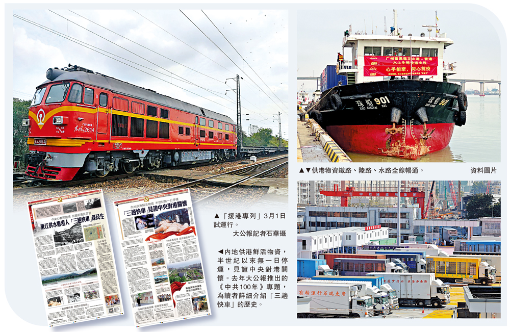 在前期開通「水運快線」的基礎上,深圳利用深圳鐵路口岸線路固定、運載能力強、所需人員少的優勢,開展供港跨境鐵路貨運列車測試,實現了供港物資鐵路、陸路、水路全線暢通。