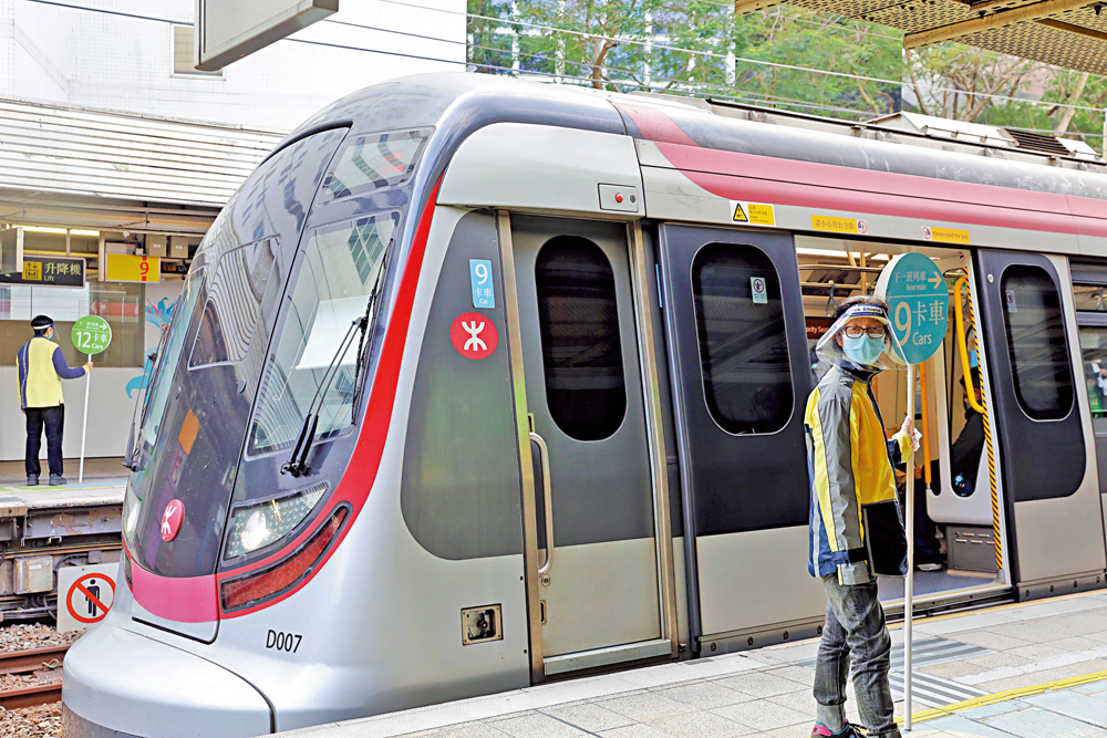 以港鐵屯馬線為例,昨日上午繁忙時段,來往方向由3分鐘一班車,調整為4分鐘至4分半鐘一班車,昨晚黃昏繁忙時段,每班較正常多40秒。