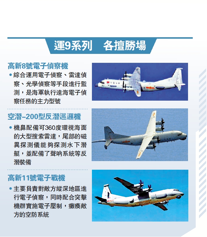 •綜合運用電子偵察、雷達偵察、光學偵察等手段進行監測,是海軍執行遠海電子偵察任務的主力型號