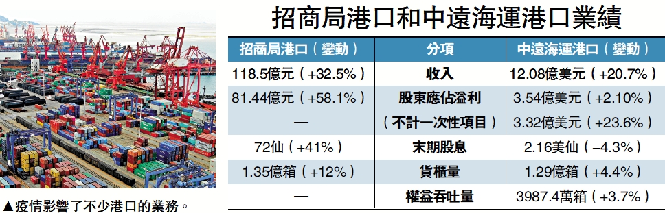 全年來看,王秀峰預測,今年吞吐量會在去年的高基礎上持續增長,其中散雜貨吞吐量料有高單位數升幅,集裝箱吞吐量則估有中單位數增長。2021年,招商局港口集裝箱吞吐量同比增長12%;散雜貨吞吐量同比增長38%。