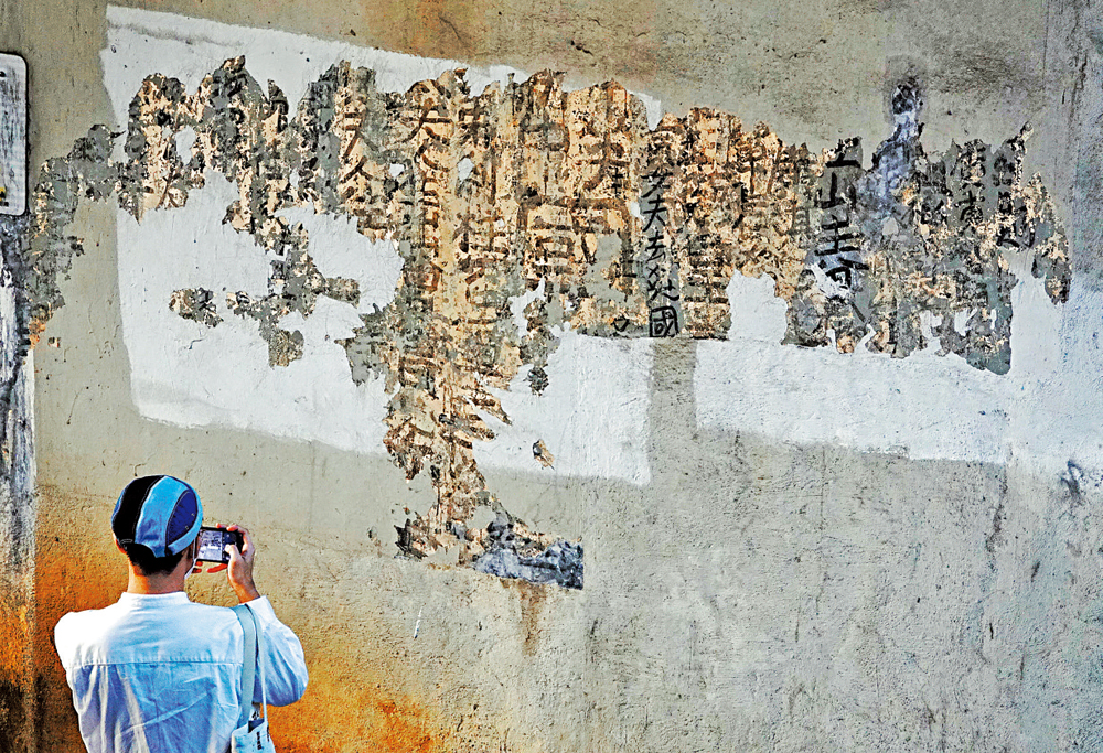 【大公報訊】香港許多大街小巷及天橋底,曾經是「九龍皇帝」曾灶財的「畫紙」,他的「墨寶」固然遍布九龍「主場」,港島區的中環及灣仔,他亦有留下「墨跡」。2007年,曾灶財逝世後,其真跡亦逐漸消失,不少更被油漆掩蓋或褪色。近日,旺角界限街東鐵線橋底,有牆身油漆剝落,令「九龍皇帝」的字跡得以「重見天日」,並成為市民打卡的熱點。有網友驚嘆:「比起藍威寶,更讓人感興趣的『九龍皇帝』的頑固墨水,到底是何特調配方,牆上留痕久久不散。」
