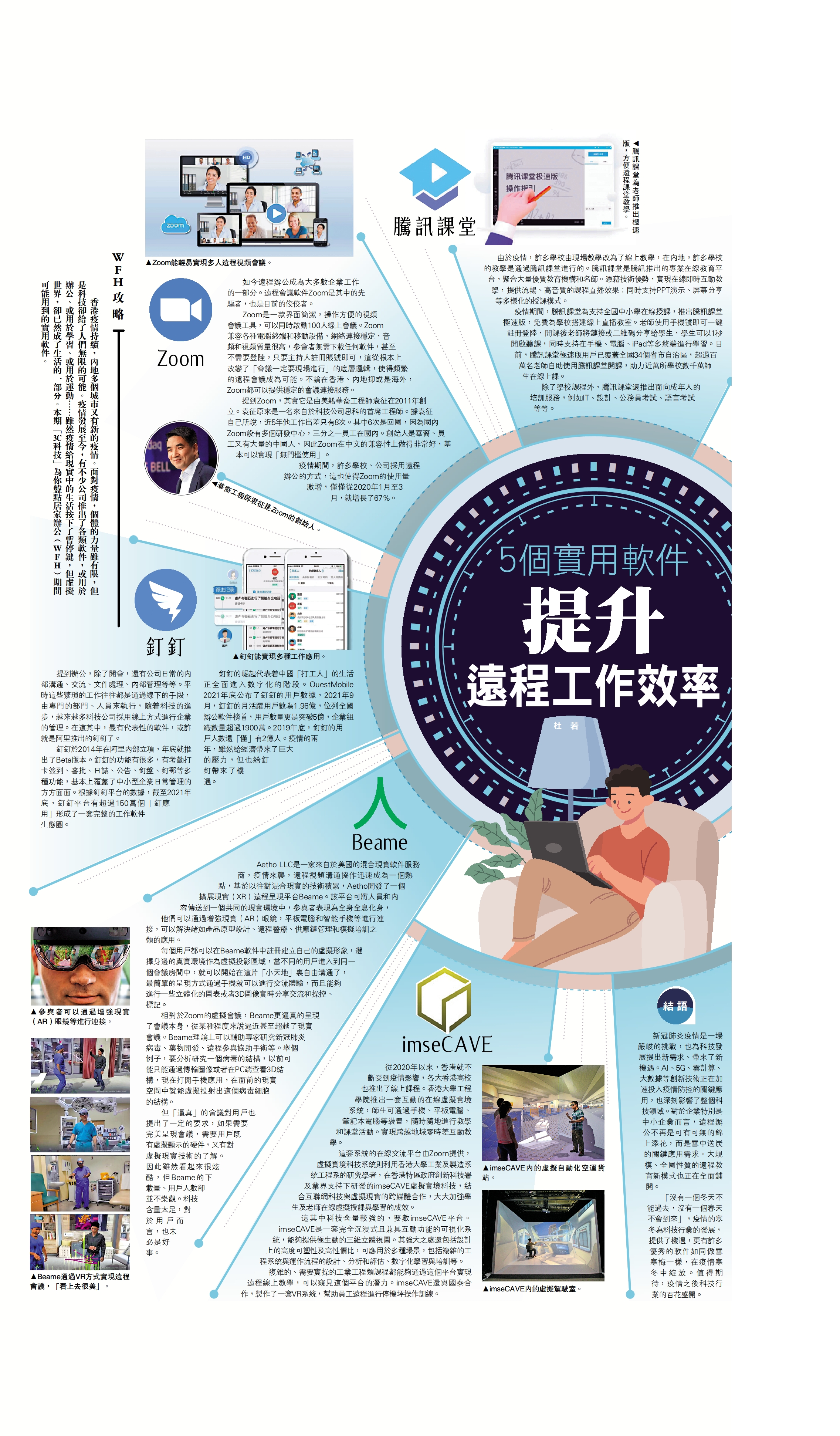香港疫情持續,內地多個城市又有新的疫情。面對疫情,個體的力量雖有限,但是科技卻給了人們無限的可能。疫情發展至今,有不少公司推出了各類軟件,或用於辦公、或用於學習、或用於運動……雖然疫情給現實中的生活按下了暫停鍵,但虛擬世界,卻已然成了生活的一部分。本期「3C科技」為你盤點居家辦公(WFH)期間可能用到的實用軟件。