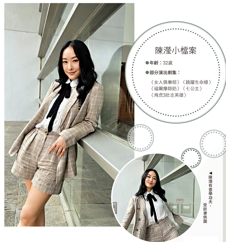 陳瀅出道之初,由於五官標致,被封為新一代美女,加上她不時在社交平台分享靚相,吸納不少粉絲。外表嬌滴滴的陳瀅,原來私下有好動一面,小時候曾主動要求學習跆拳道。她表示,未來很想學功夫,向打女方向發展。\大公報記者 文霏霏