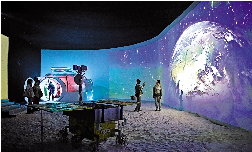 成都「漫無邊界」中國航天文創藝術展今日開展。此次主題展將巨型宇宙濃縮至一千二百平方米的空間,貫穿數十年航天、發射基地、星際橋樑、超維空間等主題場景,以沉浸式虛擬現實相結合形式,再現各個時期人類航天技術的突破。