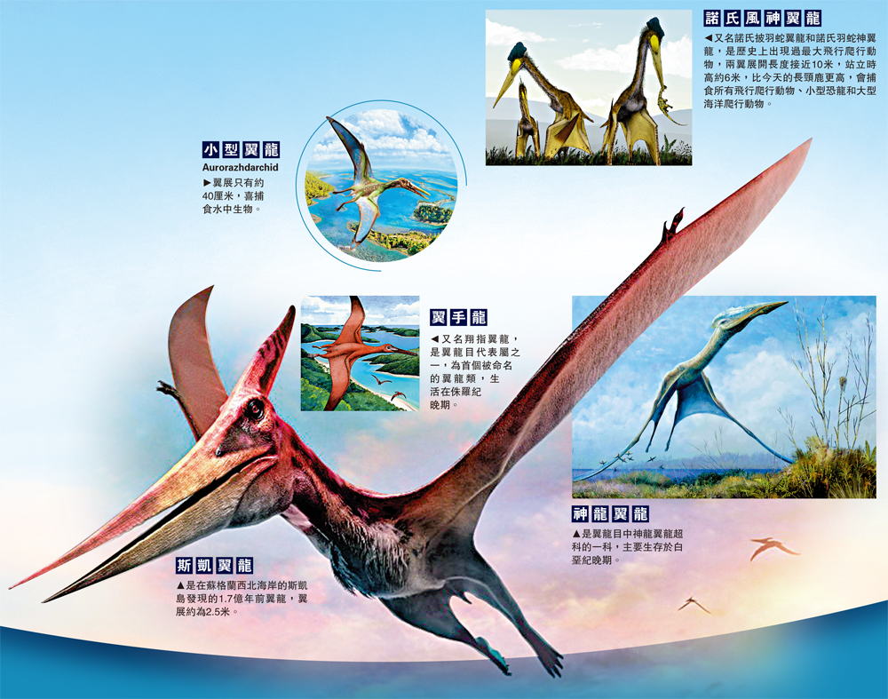 有風神之稱的翼龍作為會飛行的爬行動物,在鳥類還沒出現以前,獨霸天空好幾千萬年。牠們不是鳥類,也不是恐龍。除了捕食小恐龍和昆蟲以外,翼龍還愛吃魚。\大公報記者 鍾怡