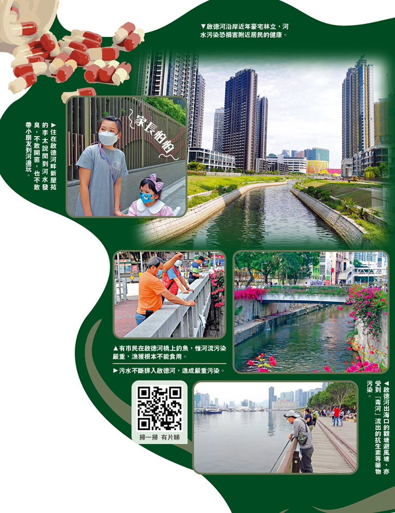 啟德河河水由黃大仙貫穿新蒲崗排出維港,出口流經啟德發展區,該處近年大興土木,豪宅林立,河畔居民驚悉與「毒河」為鄰,人人自危。專家指出,啟德河累積的高濃度抗生素和重金屬,不僅嚴重影響生態,更可能引發「生化危機」,催生抗藥性極高的超級惡菌。立法會議員建議特區政府盡快切斷污染源,例如在醫院、診所設置過期藥物回收裝置,和從嚴打擊胡亂排污者。\大公報記者 盛德文、黃山(圖、文)