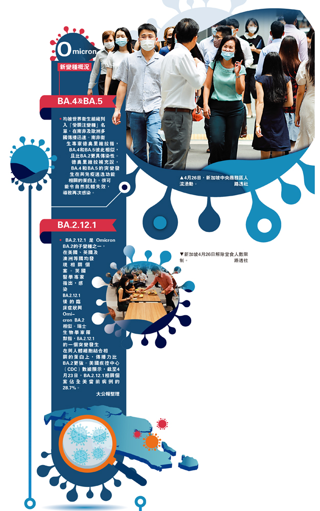 【大公報訊】綜合CNA、《海峽時報》、彭博社報道:新加坡衞生部(MOH)上周通報兩例Omicron BA.2的子變種BA.2.12.1相關個案,據報該子變種比BA.2傳播力高23%至27%。而新加坡總理李顯龍5月1日表示,今年初原本對新冠疫情復甦情況保持謹慎樂觀態度,但受到俄烏衝突影響,未來兩年,全球經濟可能出現衰退。